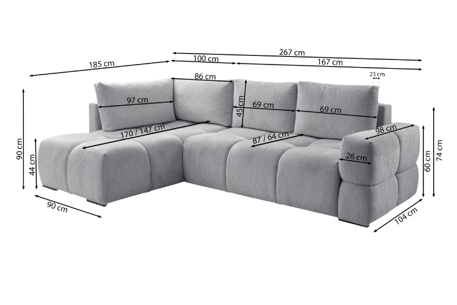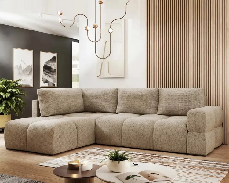 Coltar extensibil TAREMI L cu lada pentru depozitare, personalizabil 267x185cm