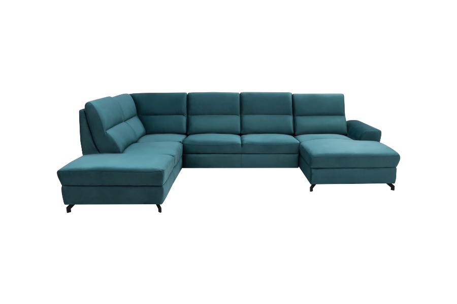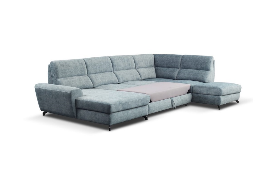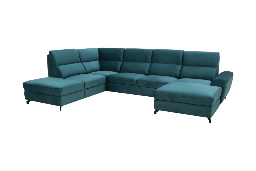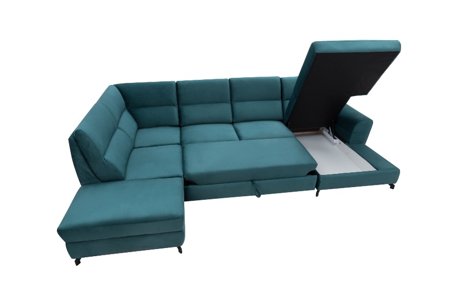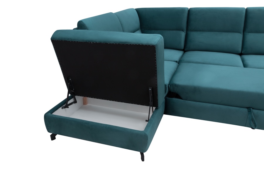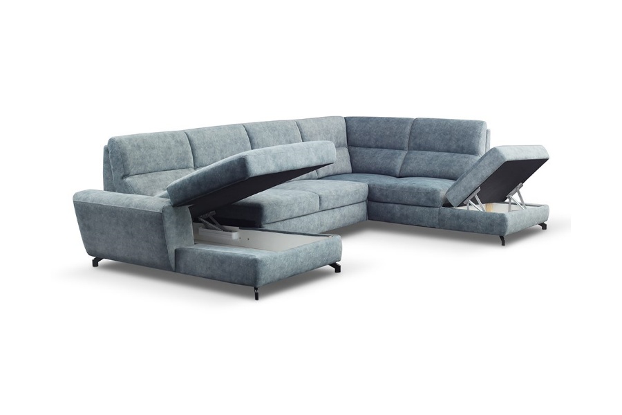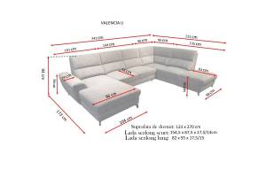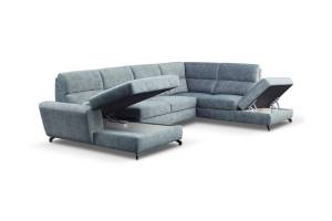Coltar extensibil VALENCIA U cu lada pentru depozitare, personalizabil 231x341x173cm