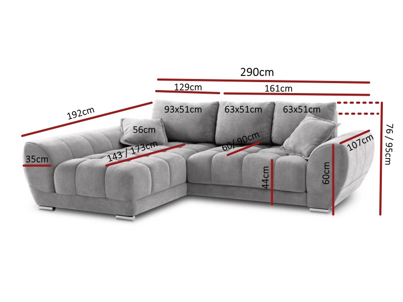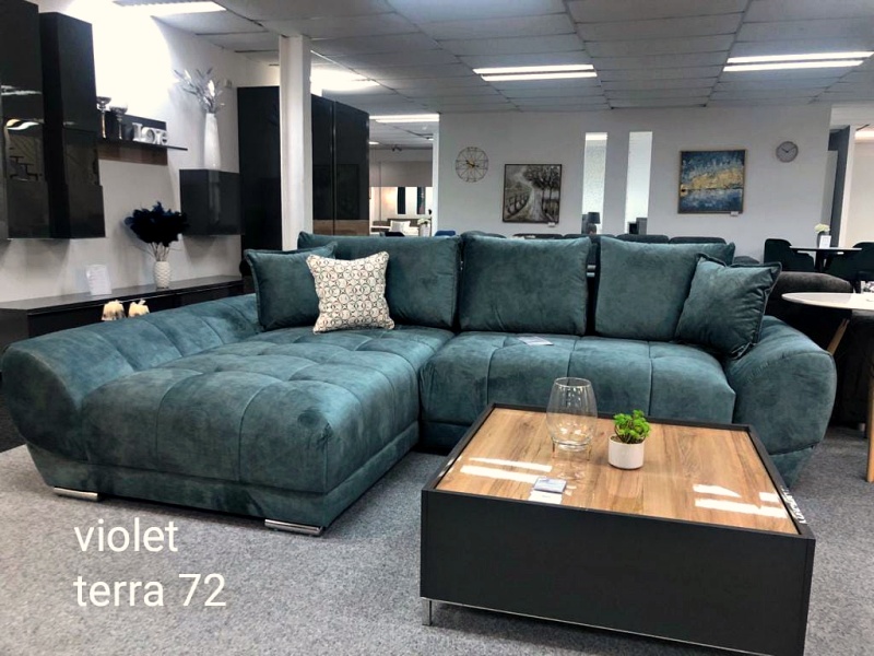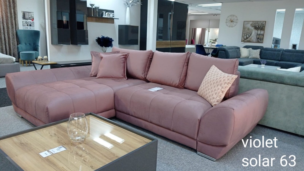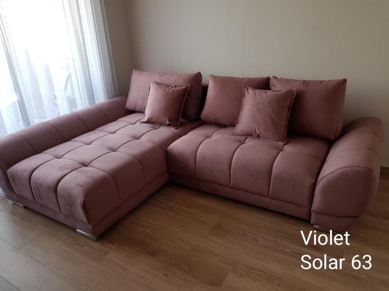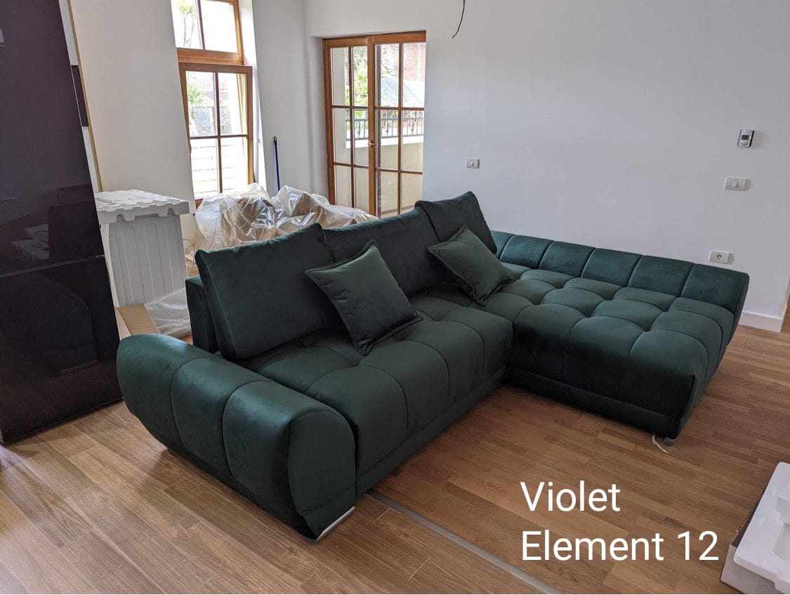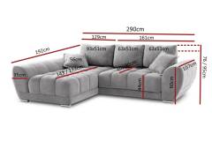 Coltar extensibil VIOLET cu lada pentru depozitare, perosnalizabil 290x192cm