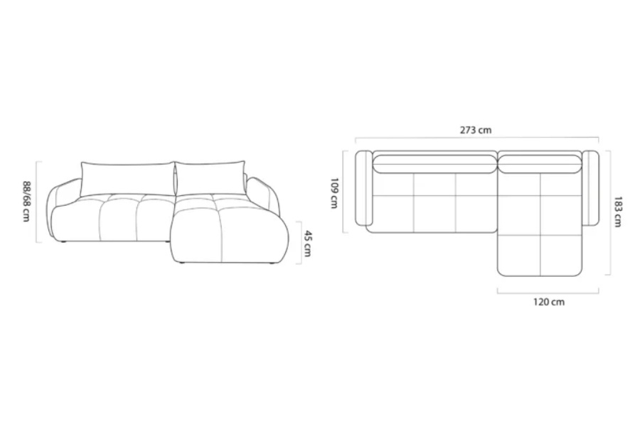 Coltar extensibil WIND S cu lada pentru depozitare, personalizabil 273x183cm