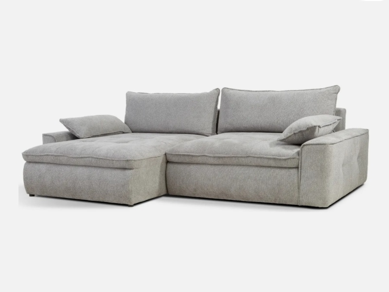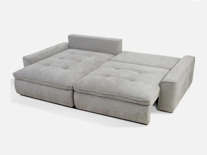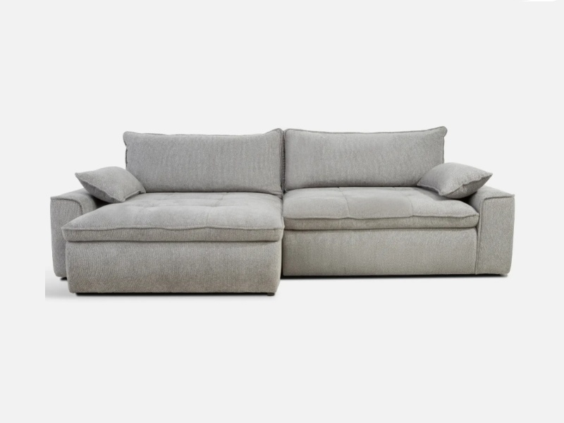 Coltar extensibil DENVO material textil gri, cu lada pentru depozitare, tetiere reglabile, spatar reglabil 290x217cm