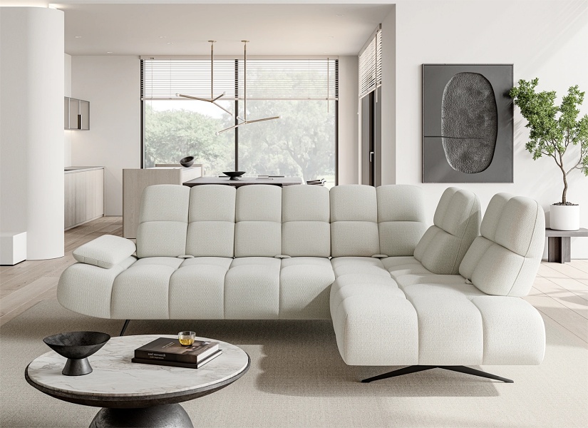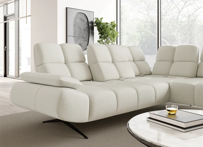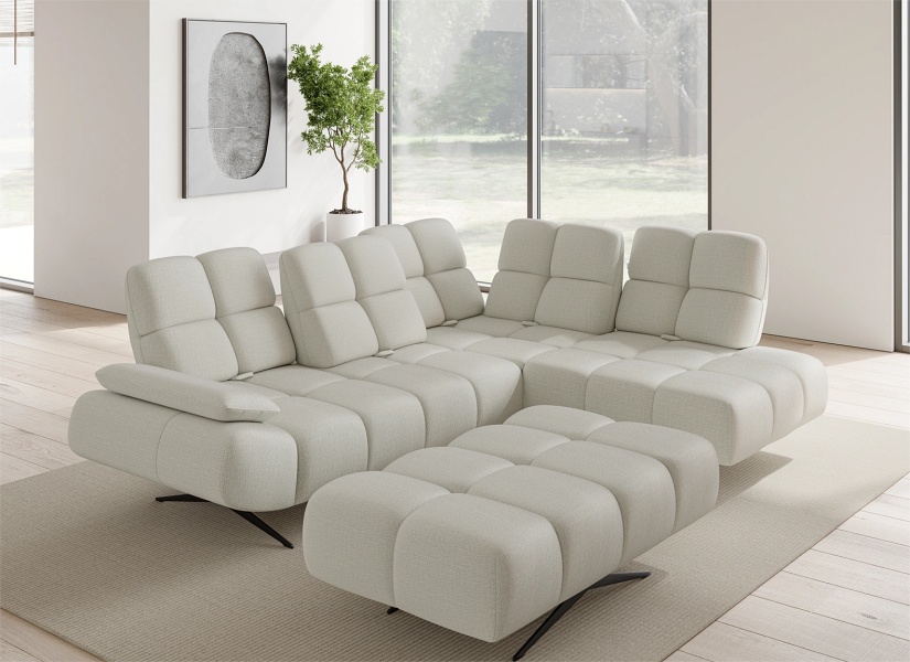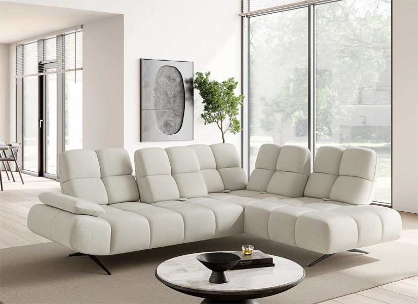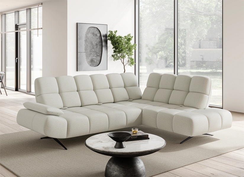 Coltar fix PRADO L cu spatar reglabil, cotiera reglabila, personalizabil 263-275x197-209cm