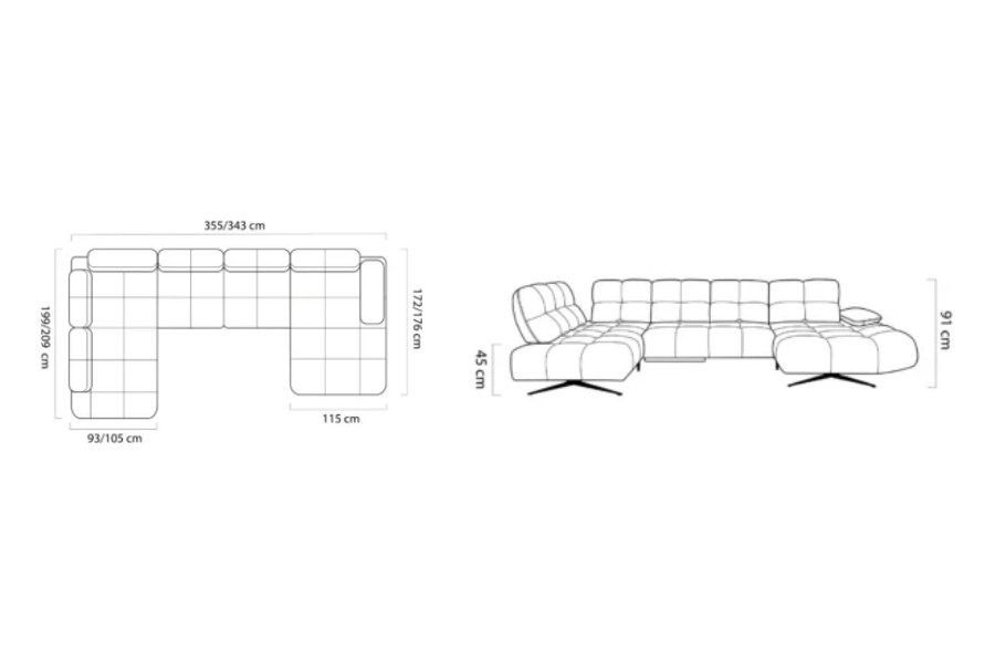 Coltar fix PRADO XL cu spatar reglabil, cotiera reglabila, personalizabil 343-355x199-209x172-176cm