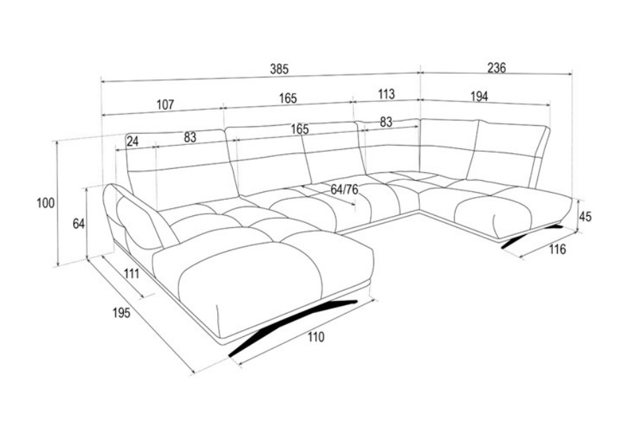 Lungime sezlong lung: 236 cm