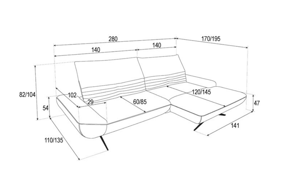 Latime totala: 170/ 195 cm