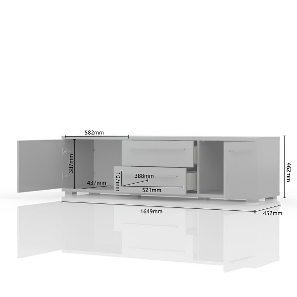 Comoda TV cu 2 usi si 2 sertare PIANO BEIGE 165x46x45cm bej lucios, manere si picioare crom
