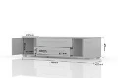 Comoda TV cu 2 usi si 2 sertare PIANO BEIGE 180x46x45cm bej lucios, manere si picioare crom