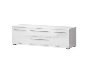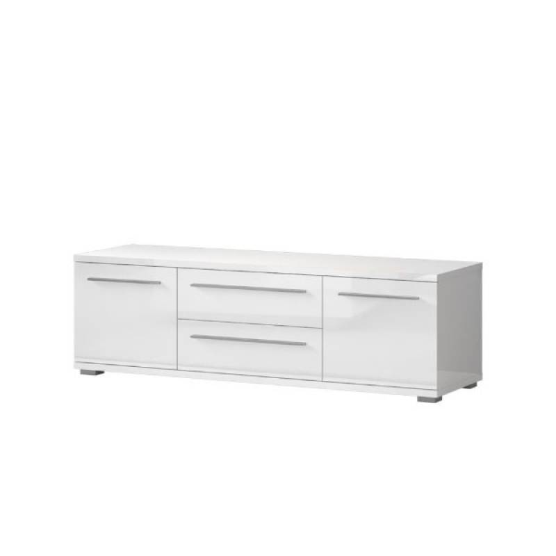 Comoda TV cu 2 usi si 2 sertare PIANO WHITE 150x46x45cm alb lucios, manere si picioare crom