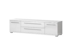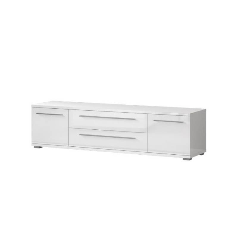 Comoda TV cu 2 usi si 2 sertare PIANO WHITE 180x46x45cm alb lucios, manere si picioare crom