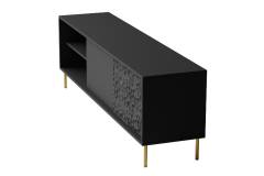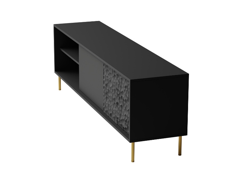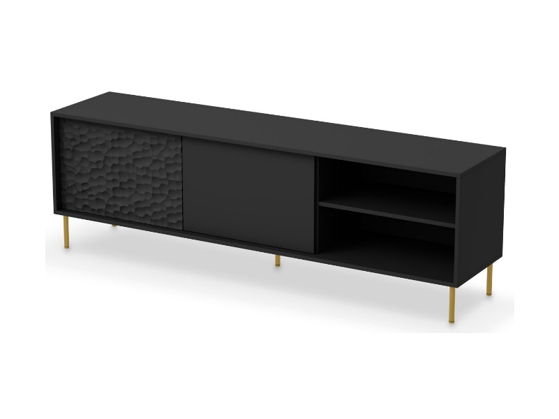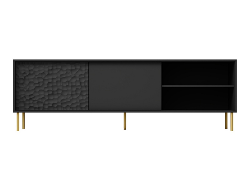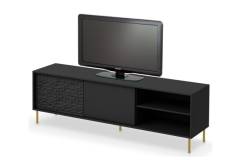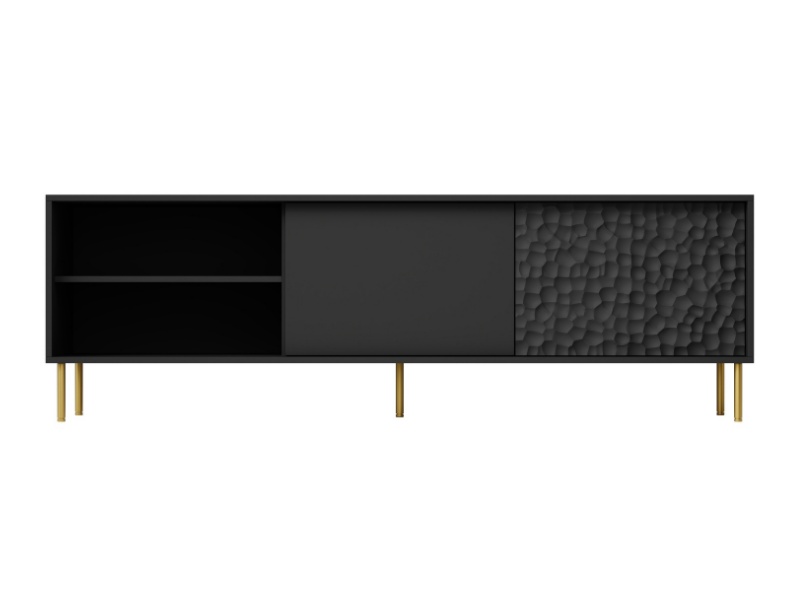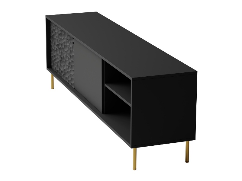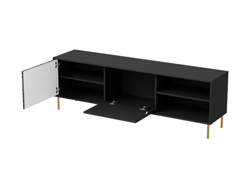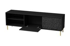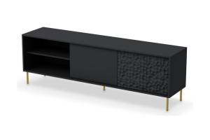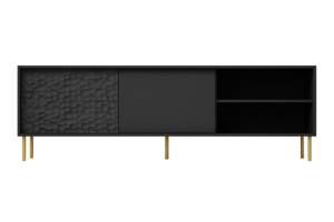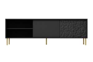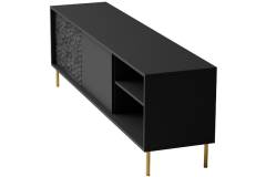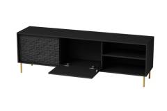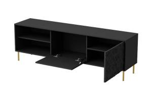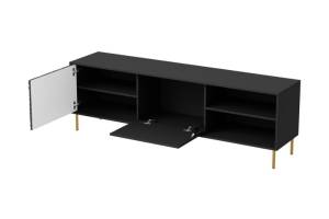 Comoda TV cu 2 usi si spatiu liber BULLET 180x58x41cm negru, picioare aurii