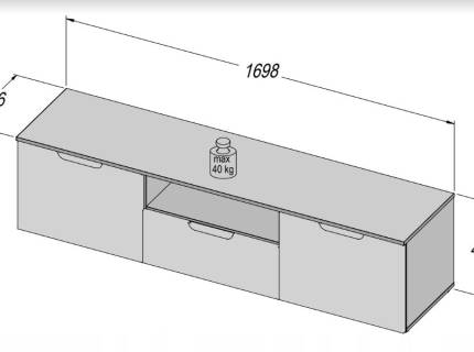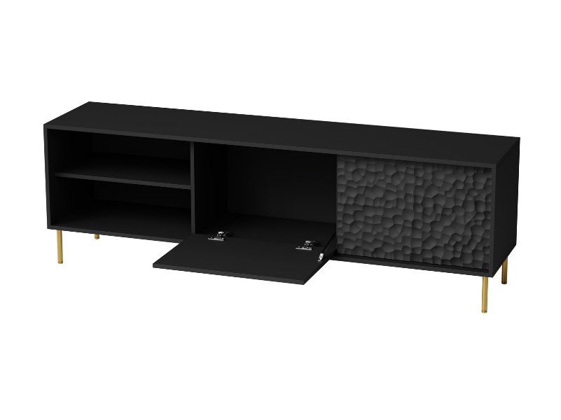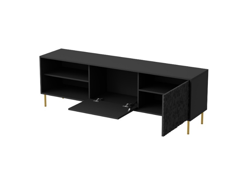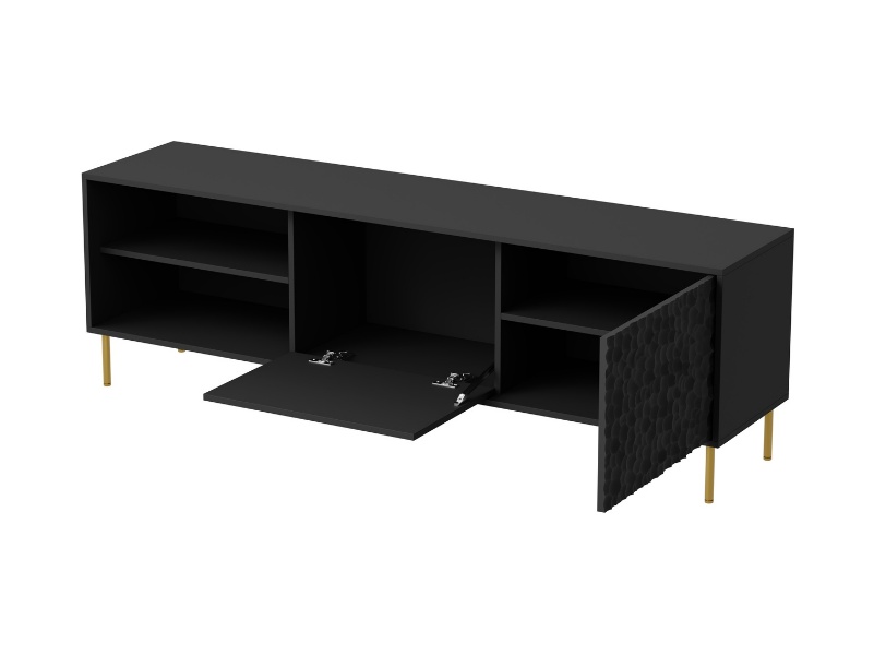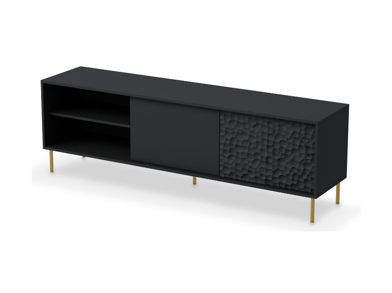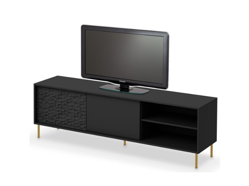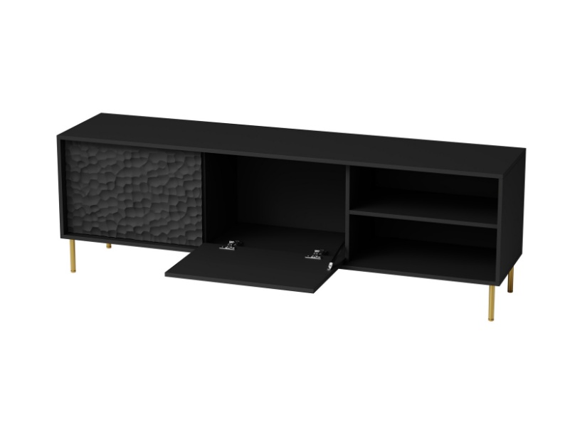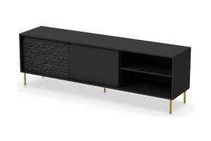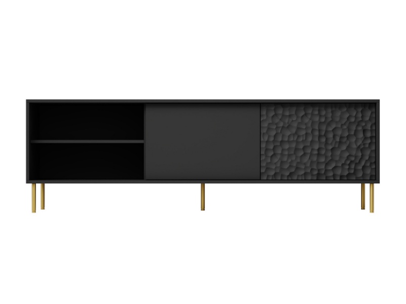Comoda TV cu 2 usi si spatiu liber BULLET 180x58x41cm negru, picioare aurii