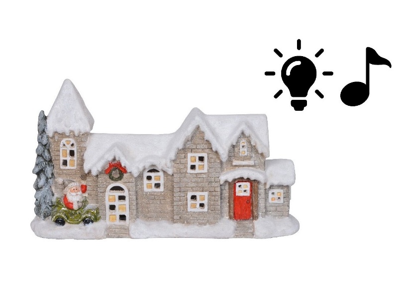 Casa de craciun din ceramica cu LED 54x13.5x31cm