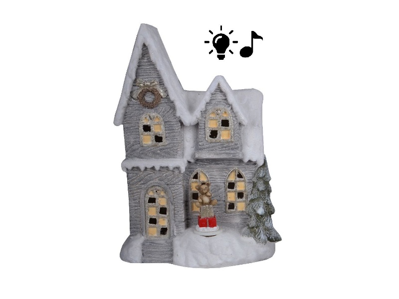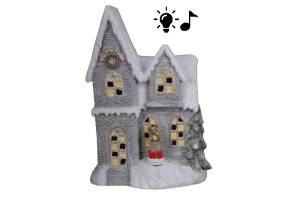 Casa muzicala de craciun din ceramica cu LED 34x19x50cm
