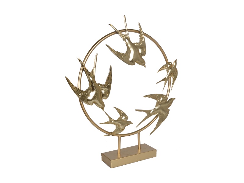 Decoratiune cerc auriu cu pasari 46.4x54x8.3cm