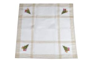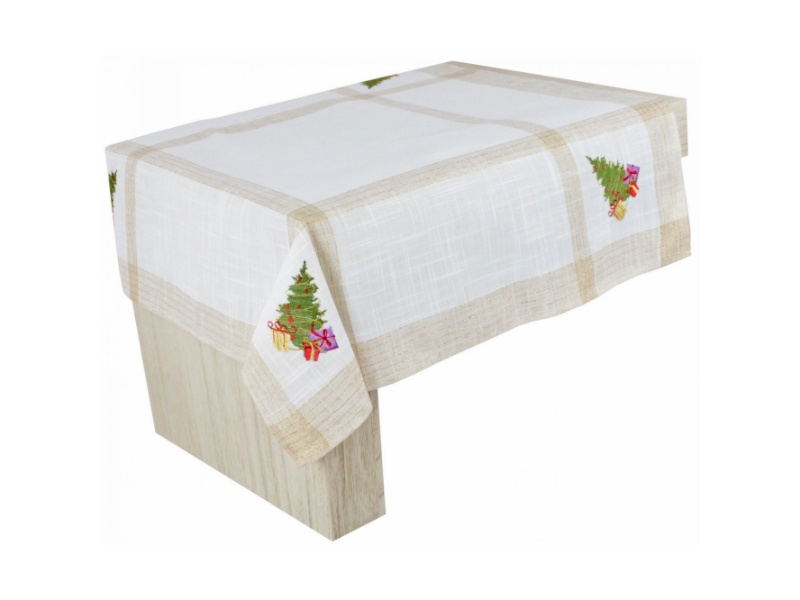 - Nuanta: alb / bej + auriu + multicolor (brad)