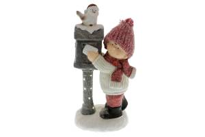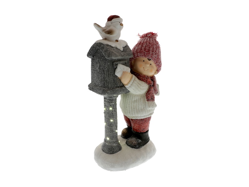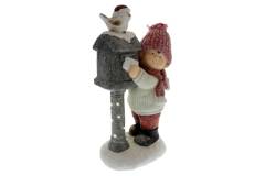 Ornament decorativ din ceramic cu baietel si cutie postala de craciun 21.5x21.5x38.5cm
