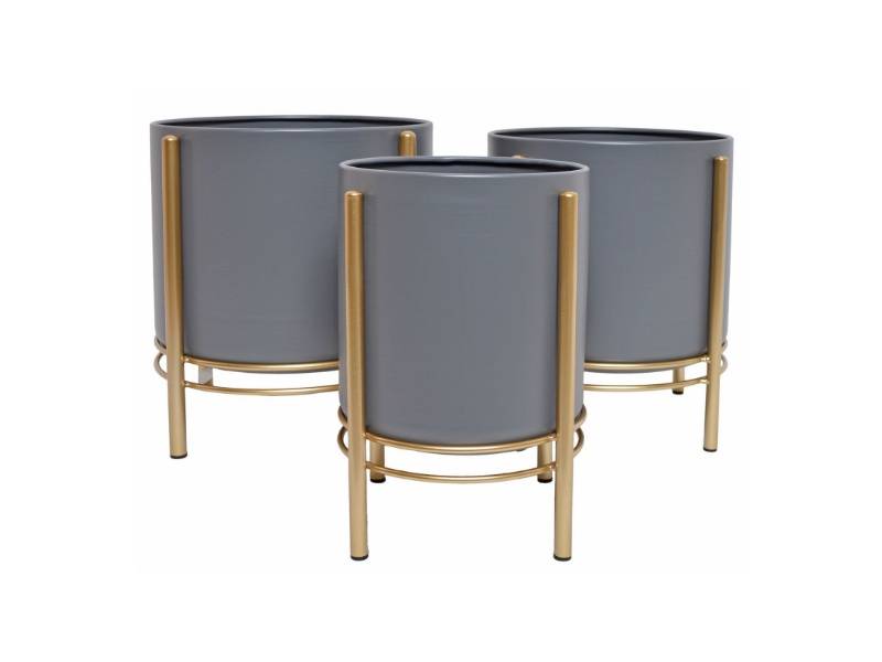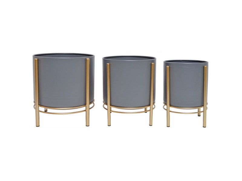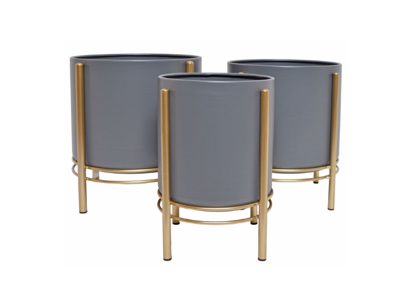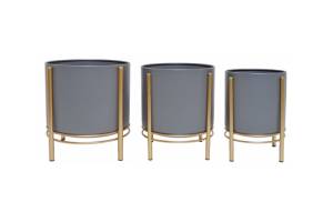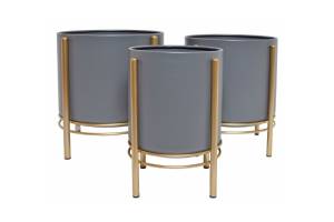 Set 3 ghivece de flori metalice cu auriu