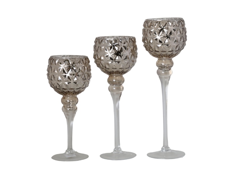 Set 3 potire nuanta sampanie din sticla