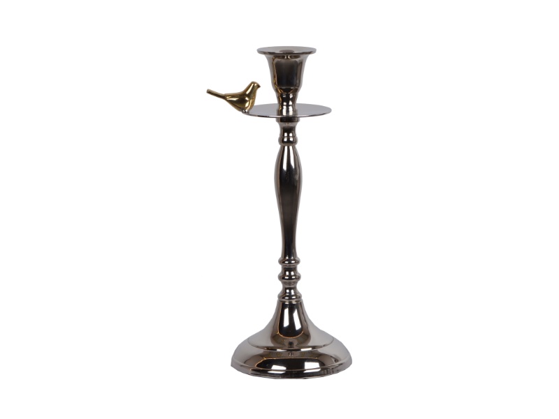Sfesnic metal argintiu cu pasare 10.5x10.5x27.5cm
