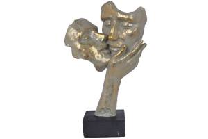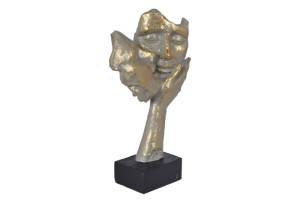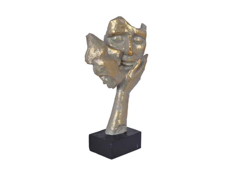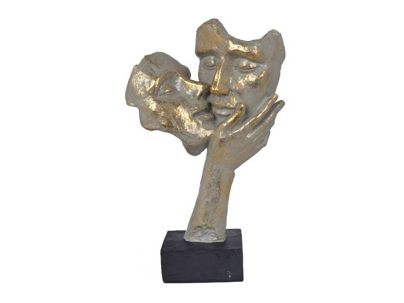 Statueta chip femeie si barbat pe o mana sarutandu-se gri-auriu din metal