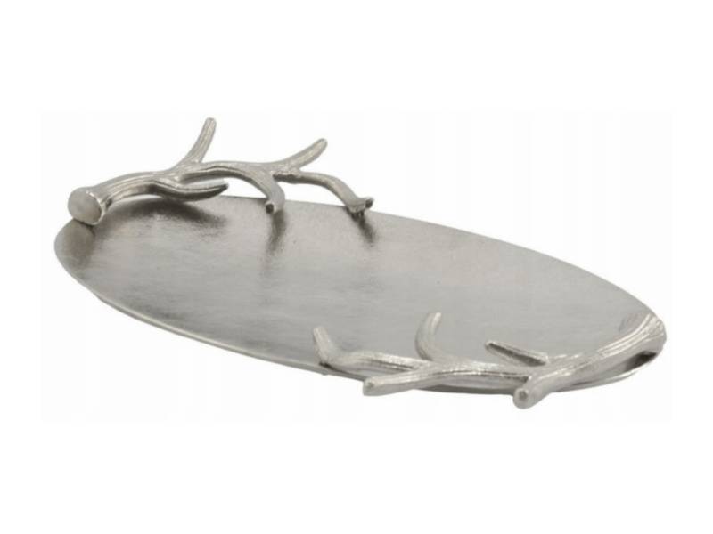 Tava mica argintiu cu coarne 38.5x27x4.5cm