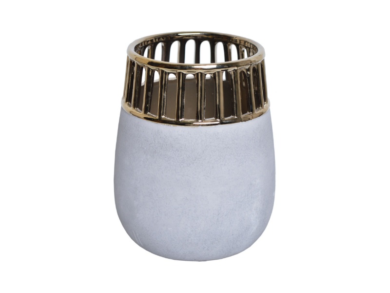Vaza ceramica gri/ auriu M 18x18x22cm