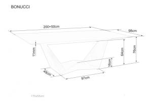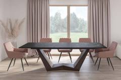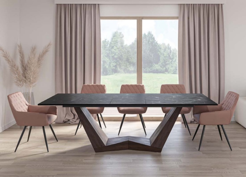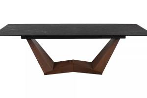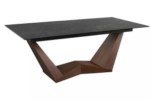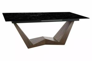 Masa extensibila BONUCCI CERAMIC GREY din ceramica cu efect de marmura Nero Greco, furnir nuc 200-250x98xH76cm