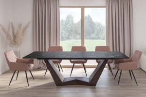 Masa extensibila BONUCCI CERAMIC GREY imbina stilul modern cu functionalitatea. Blatul din ceramica italiana Nero Greco, termorezistent si elegant, completeaza designul in nuante de nuc si negru mat. Ideala pentru living sau dining, oferind durabilitate si rafinament.