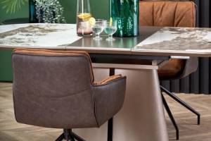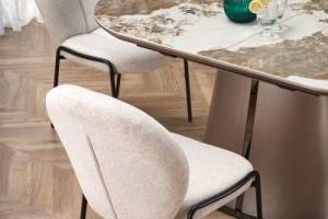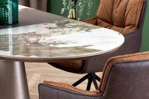 Masa extensibila ROBINSON din MDF si ceramica cu efect de marmura cappuccino, metal cappuccino 160-200x90xH76cm