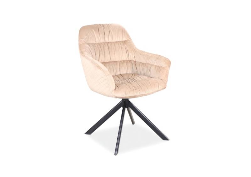Scaun tapitat ASTORIA VELVET rotativ, confortabil, catifea beige 60x60xH85cm, picioare negre