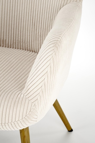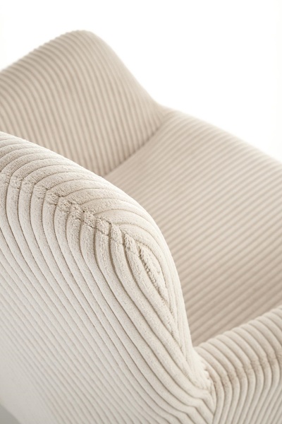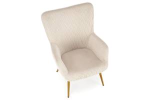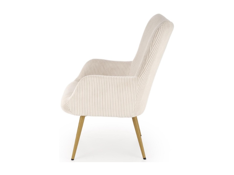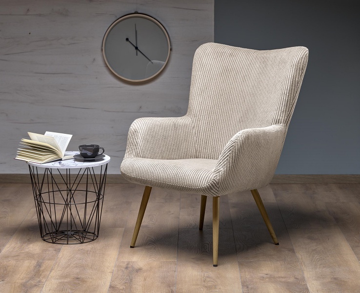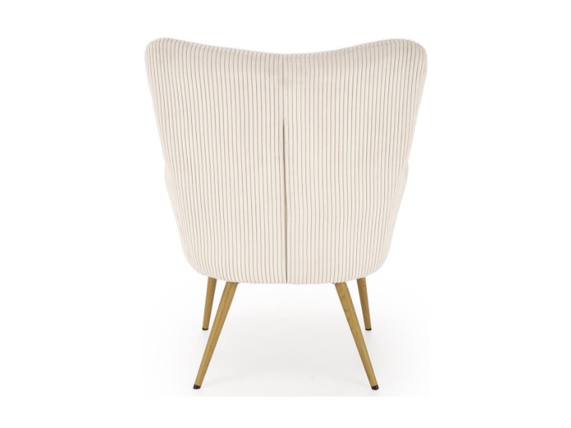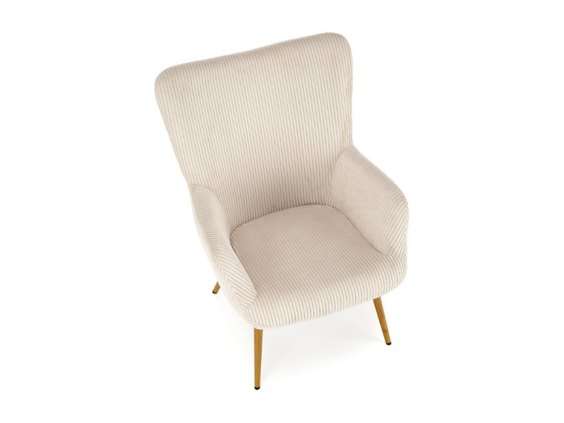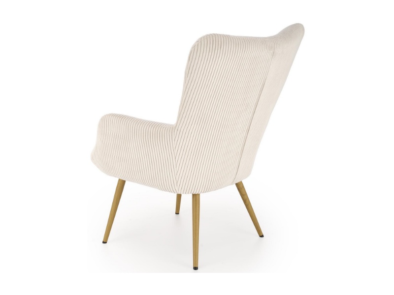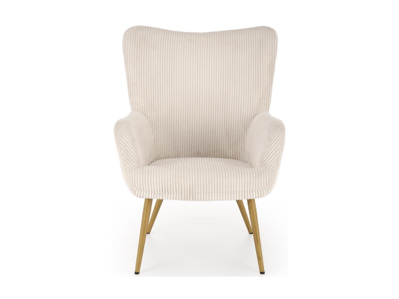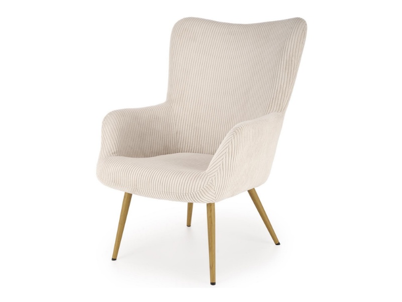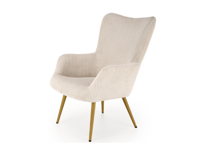 Fotoliu AMARO material plusat-raiat crem, picioare nuanta lemnului, design scandinav 70x80xH97cm