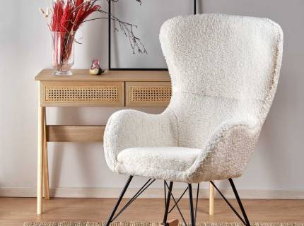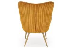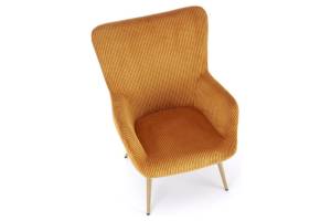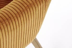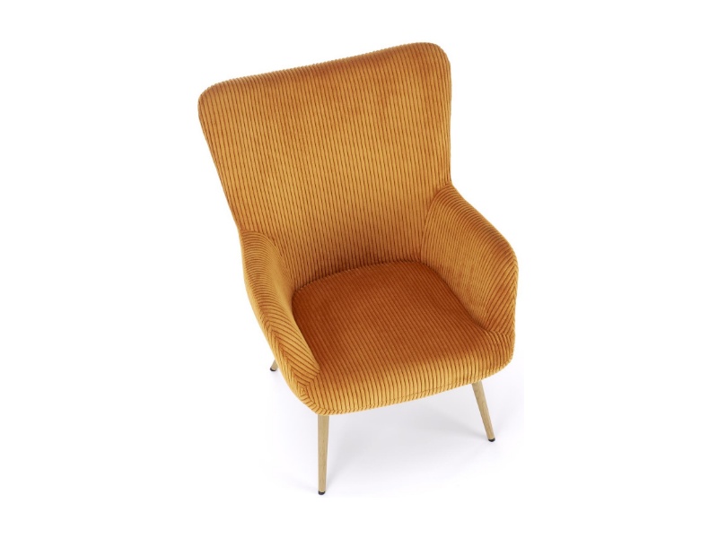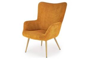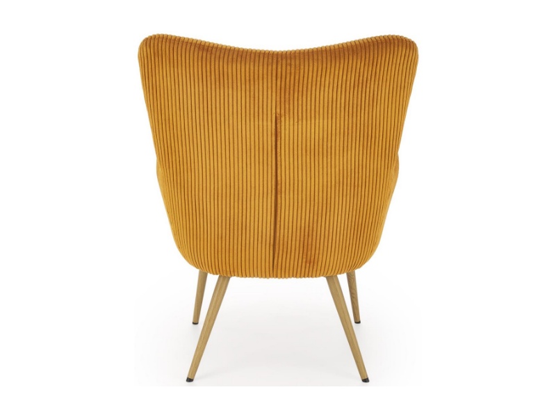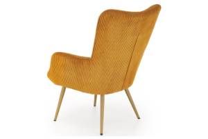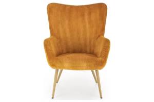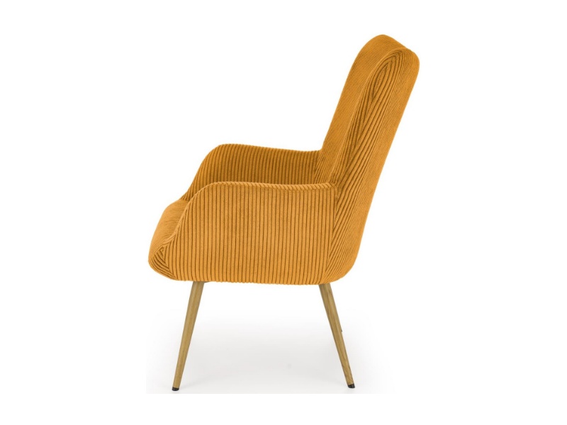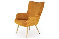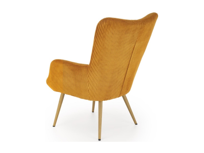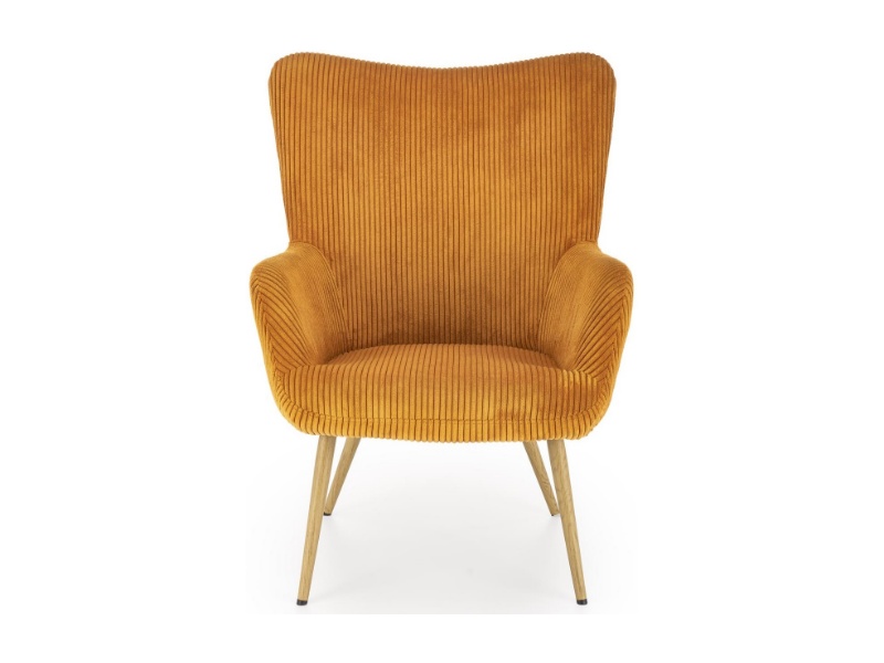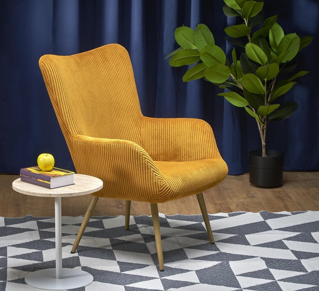 Fotoliu AMARO material plusat-raiat curry, picioare nuanta lemnului, design scandinav 70x80xH97cm