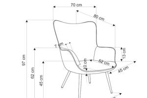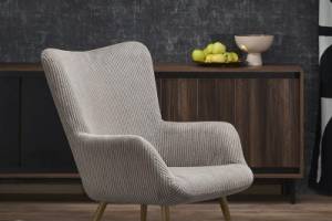 Fotoliu AMARO material plusat-raiat grey, picioare nuanta lemnului, design scandinav 70x80xH97cm
