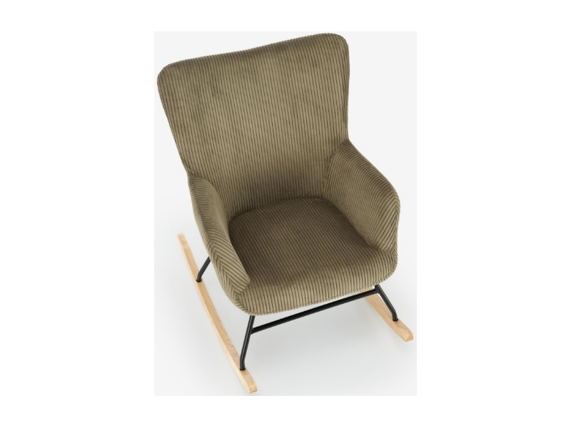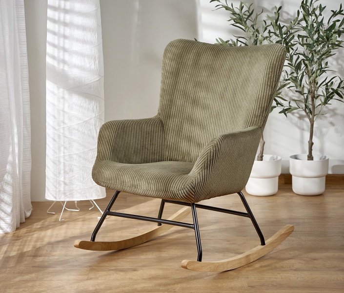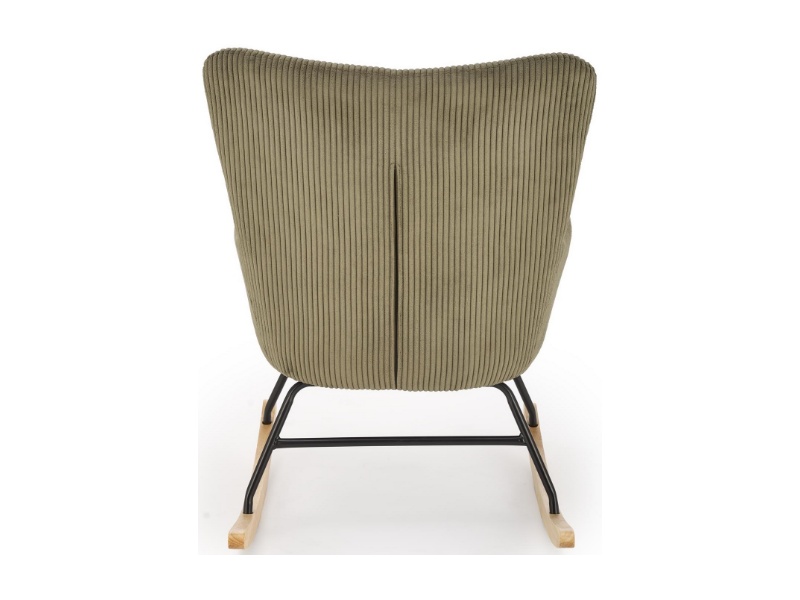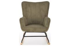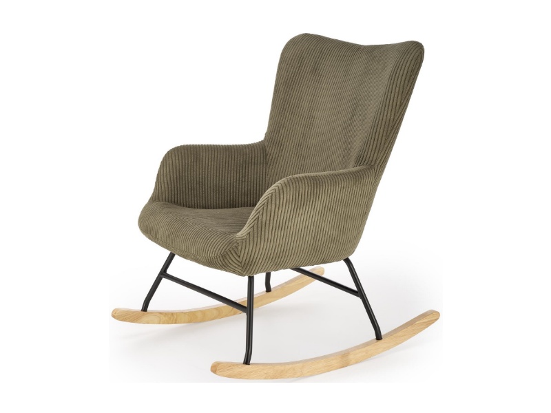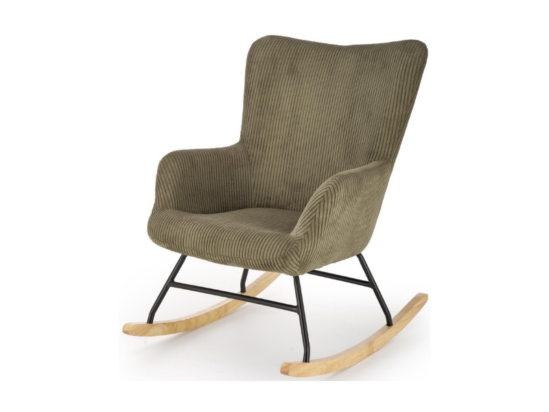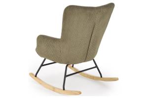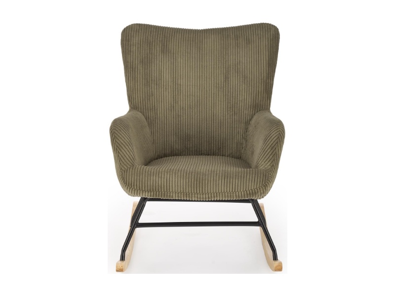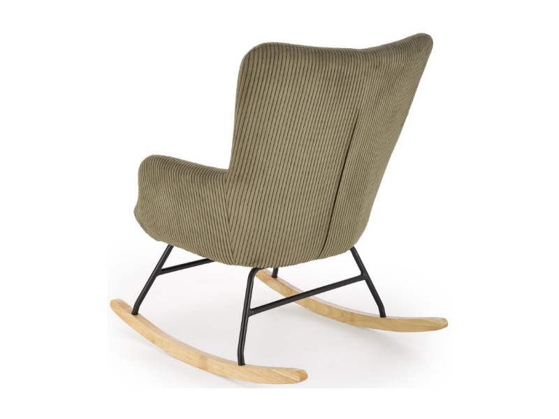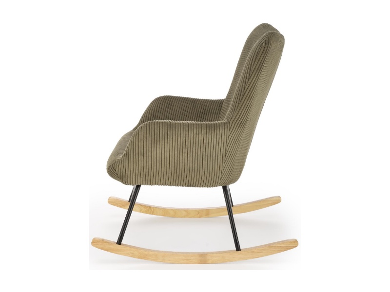 Fotoliu BELMIRO cu functie de balansare, material plusat-raiat olive, picioare nuanta lemnului + negru