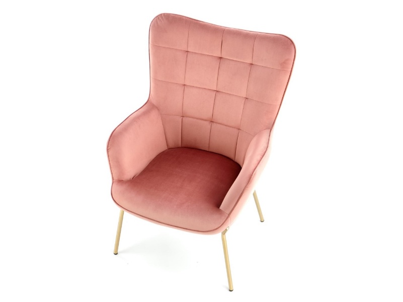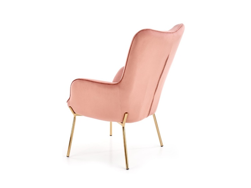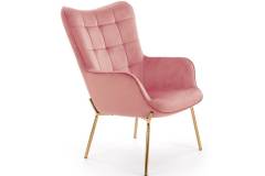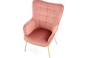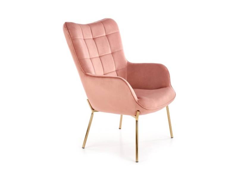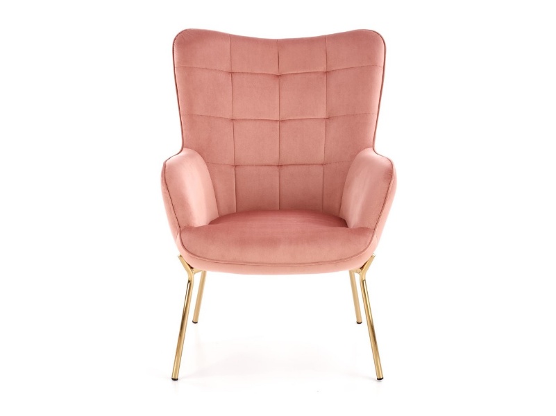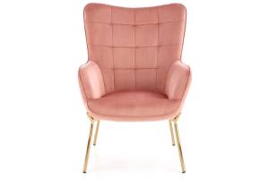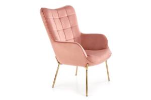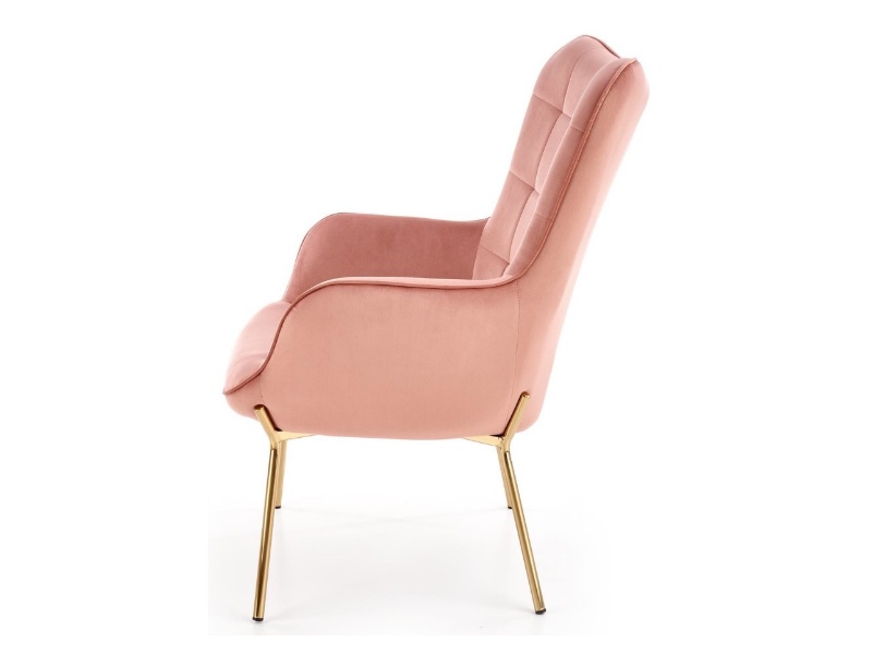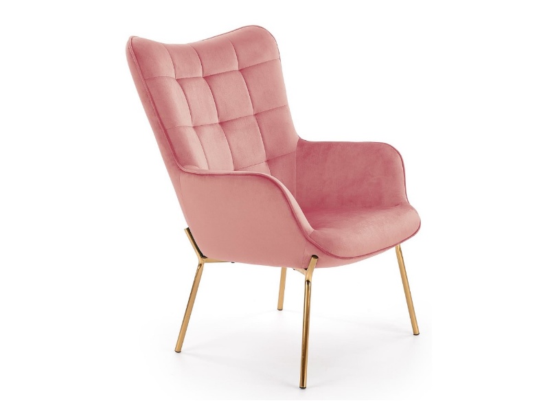 Fotoliu CASTEL 2 catifea roz, picioare aurii, spatar inalt, design clasic 71x79xH97cm