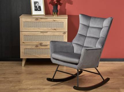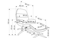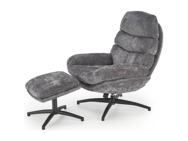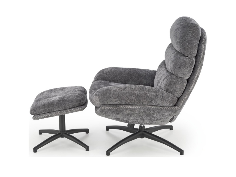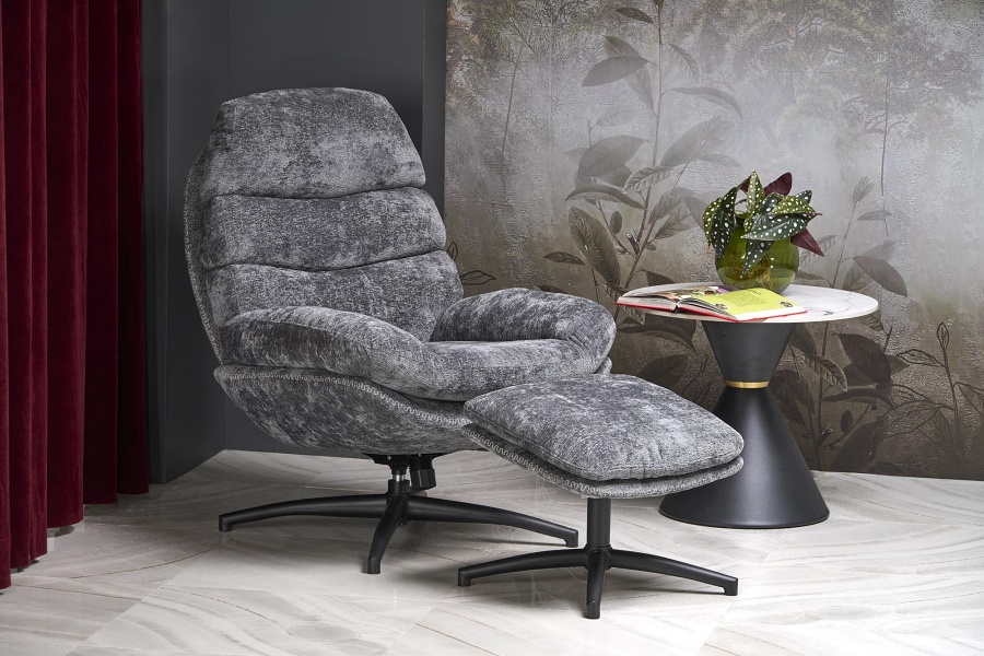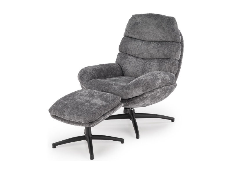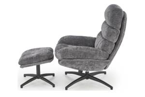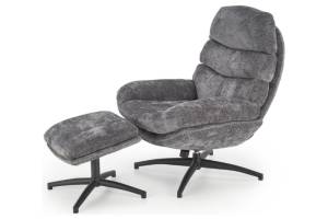 Fotoliu cu taburet DARIO rotativ, cu sistem de balasare, confortabil, material texil-plusat grey 80x90xH100cm