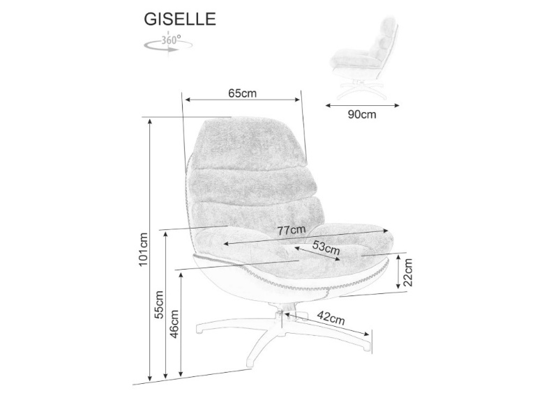 Fotoliu GISELLE rotativ, cu sistem de balasare usoara, confortabil, material texil + ecopiele 73x77xH86cm