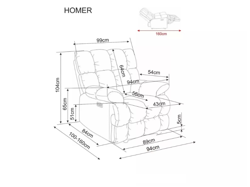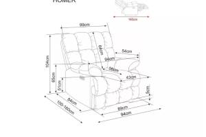 Fotoliu HOMER RAVEN cu recliner electric, functie de balansare, material textil brown 94x100-160xH104cm
