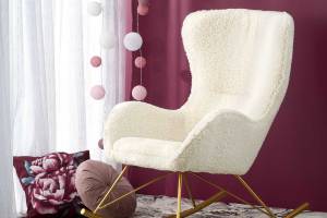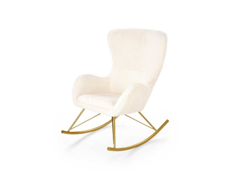 Fotoliu LIBERTO cu functie de balansare, material plusat crem, picioare aurii72x100xH106cm