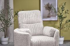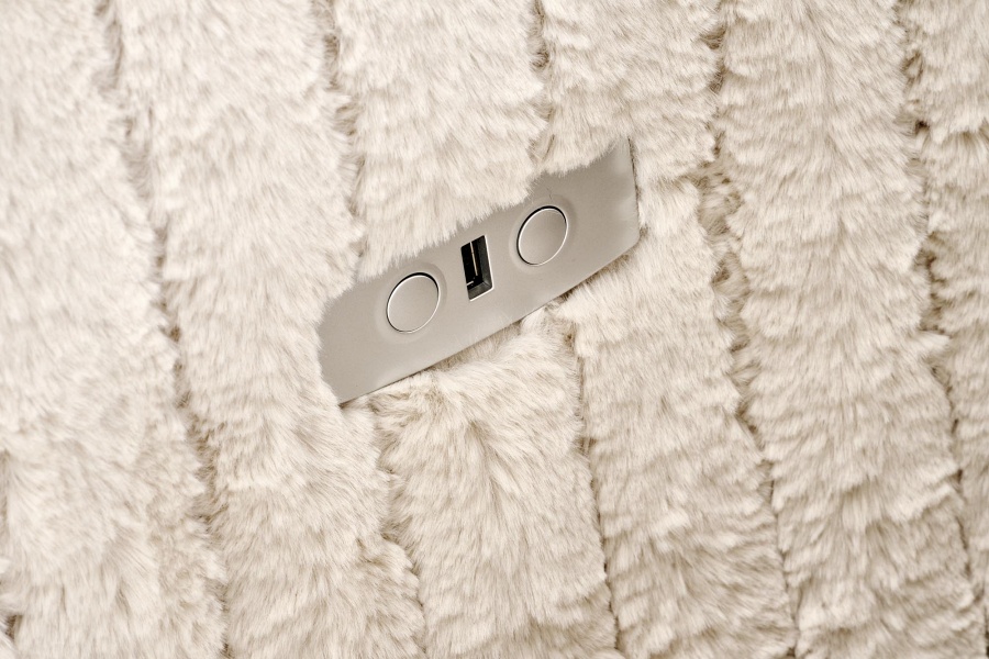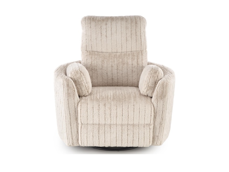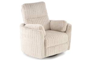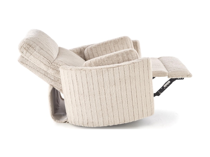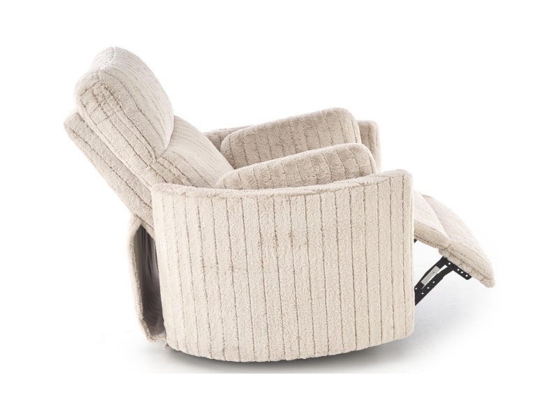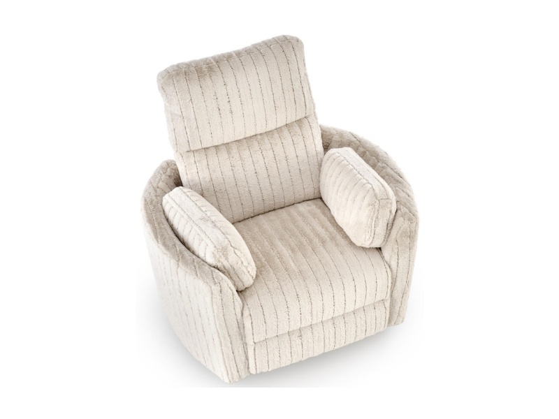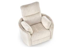 Fotoliu PEGAS rotativ cu recliner electric, incarcare USB integrata, functie de balansoar, material plusat bej, confortabil 110x110-170xH81-108cm