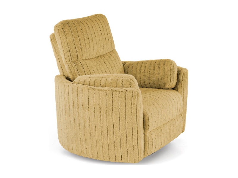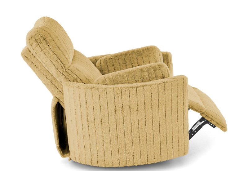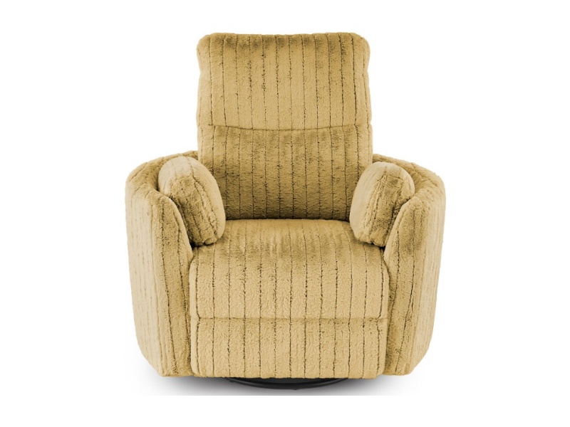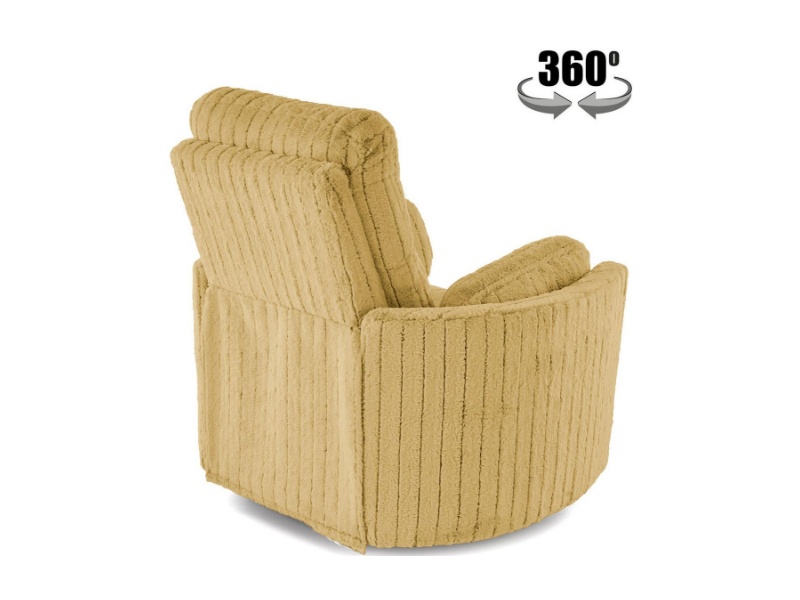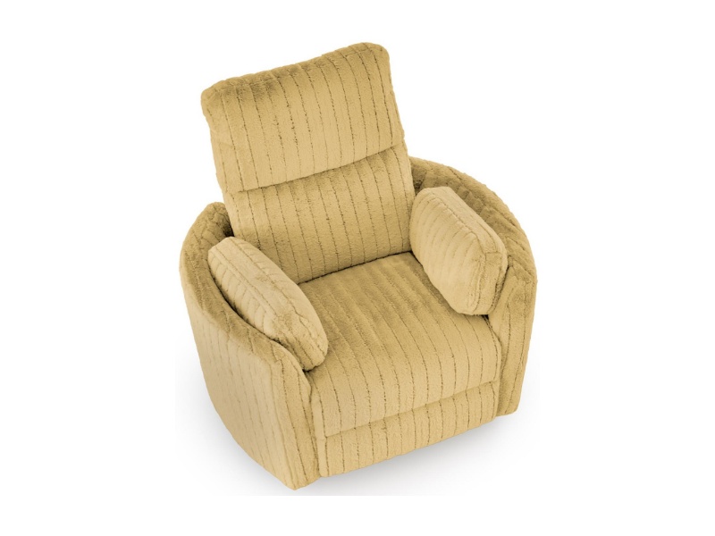 Fotoliu PEGAS rotativ cu recliner electric, incarcare USB integrata, functie de balansoar, material plusat curry, confortabil 110x110-170xH81-108cm