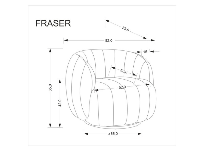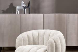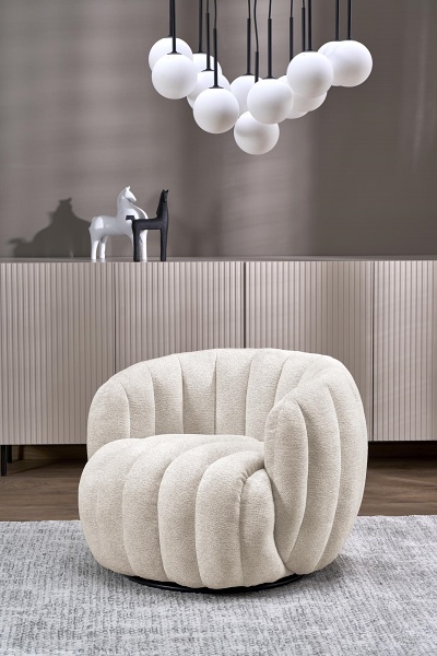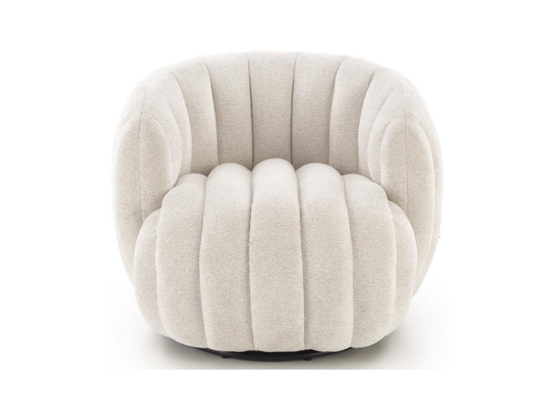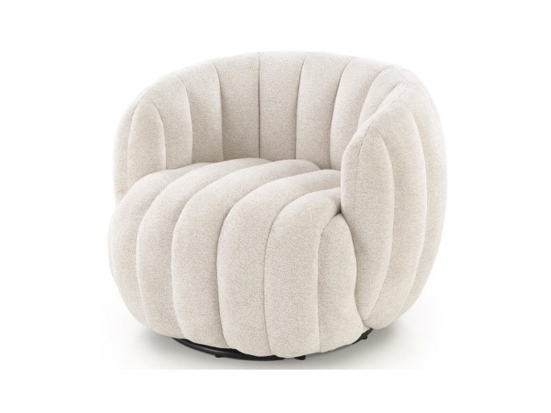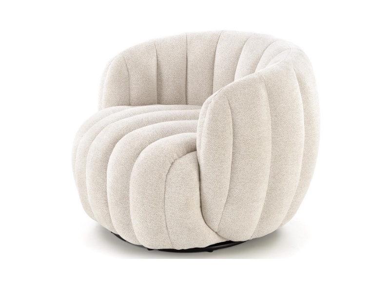 Fotoliu rotativ cozy cu design curbat FRASER material textil crem 82x83xH65cm
