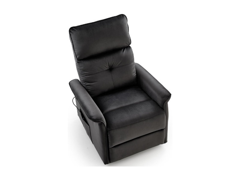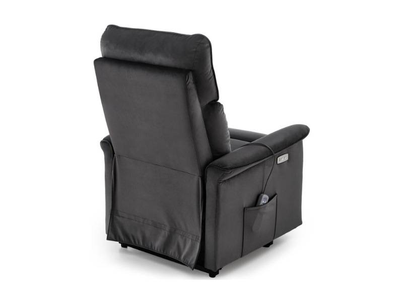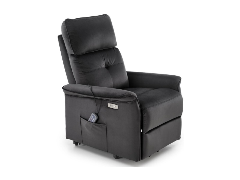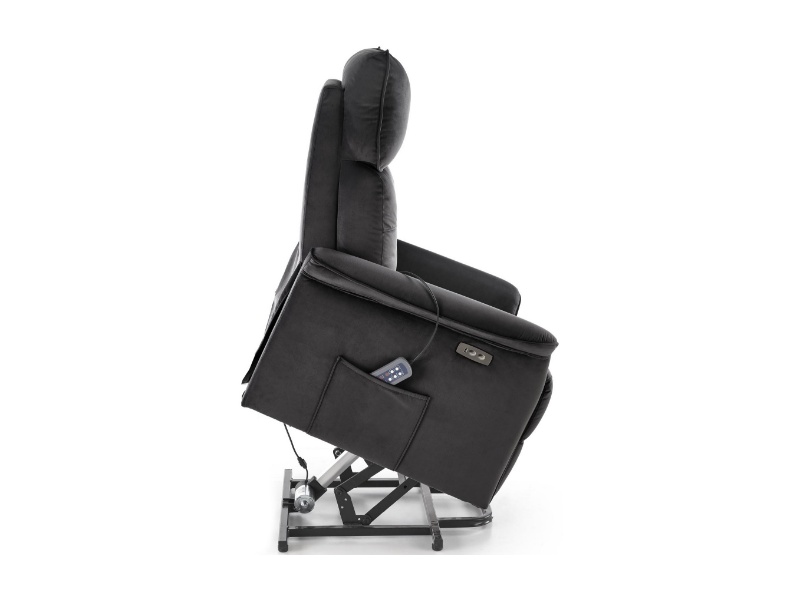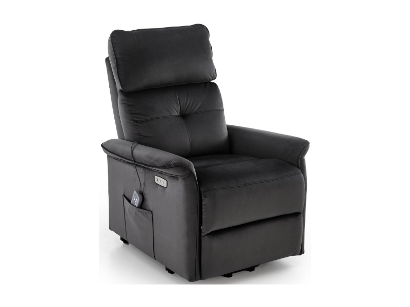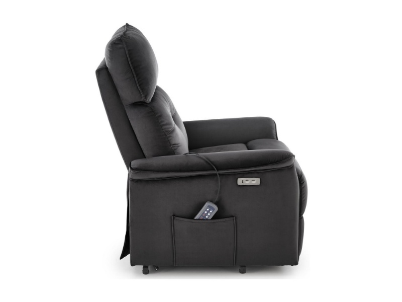 Fotoliu SEMIR 2 cu recliner electric, functie de masaj, port USB, buzunar pentru depozitare, confortabil, catifea black 80x90xH108cm