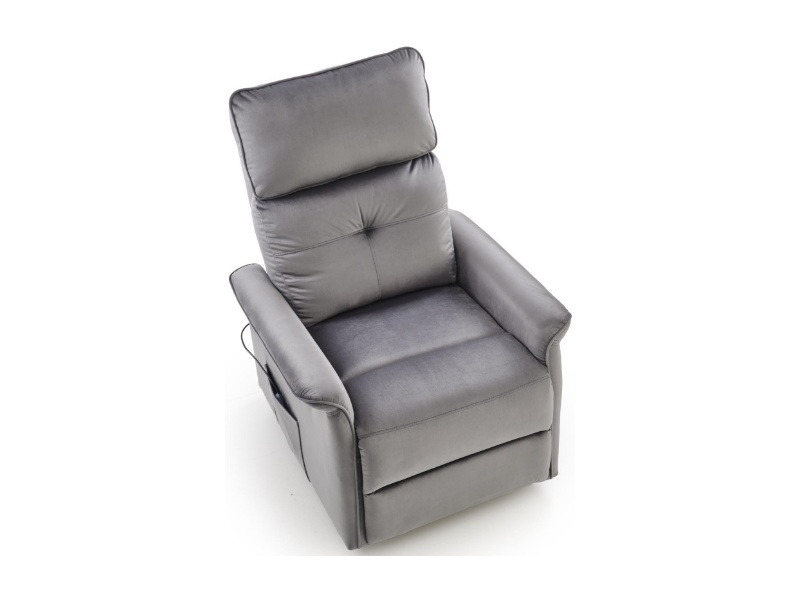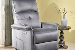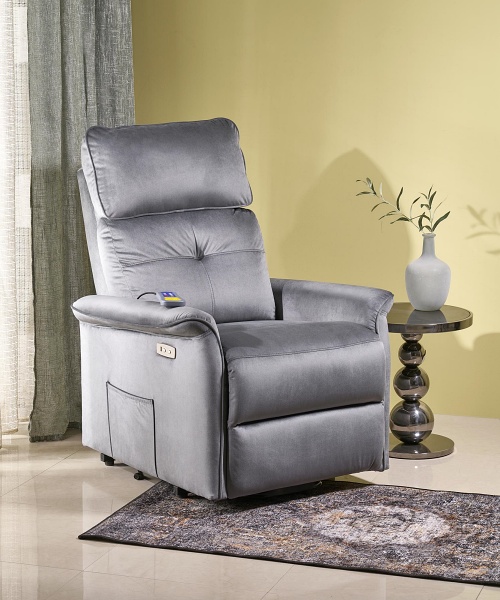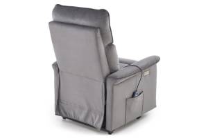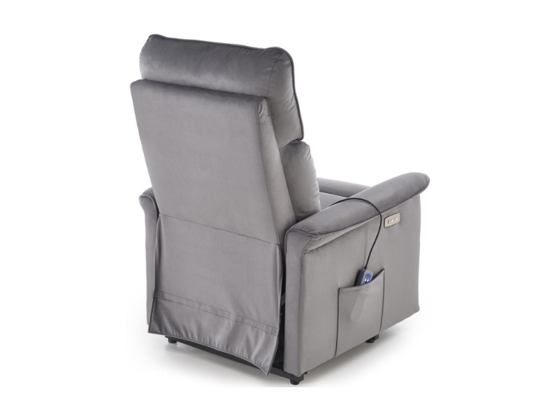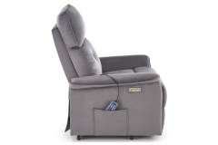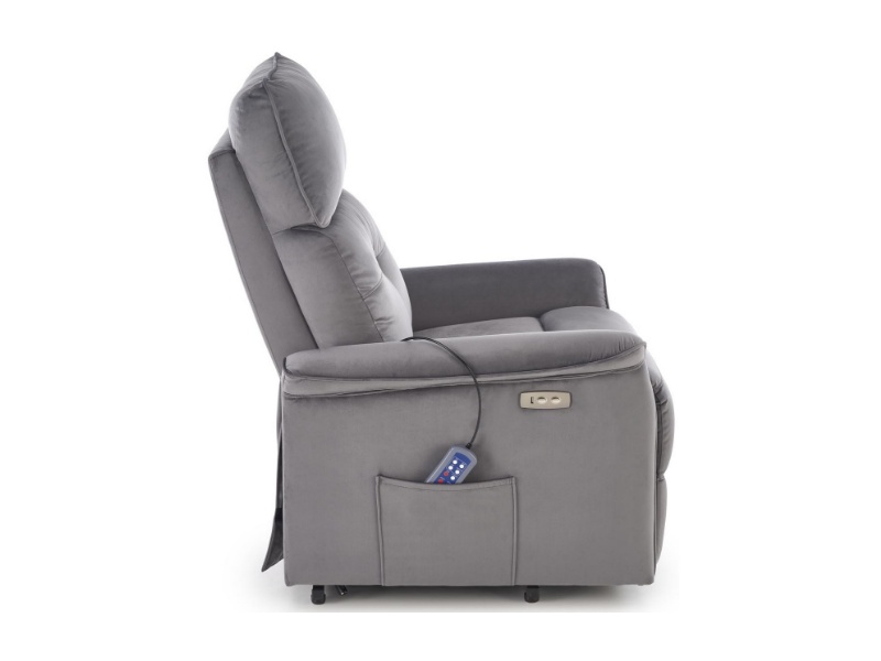 Fotoliu SEMIR 2 cu recliner electric, functie de masaj, port USB, buzunar pentru depozitare, confortabil, catifea grey 80x90xH108cm