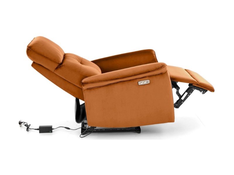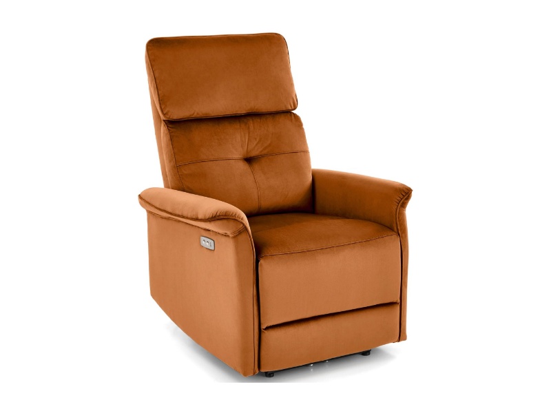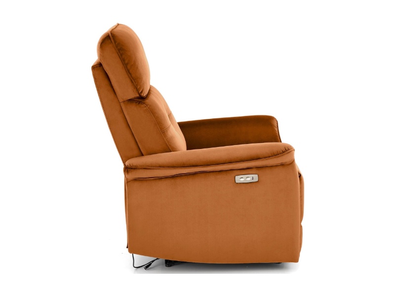 Fotoliu SEMIR cu recliner electric, port USB, confortabil, catifea cinnamon 80x90xH108cm