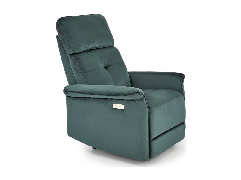 Fotoliu SEMIR cu recliner electric, port USB, confortabil, catifea green 80x90xH108cm