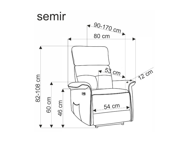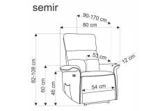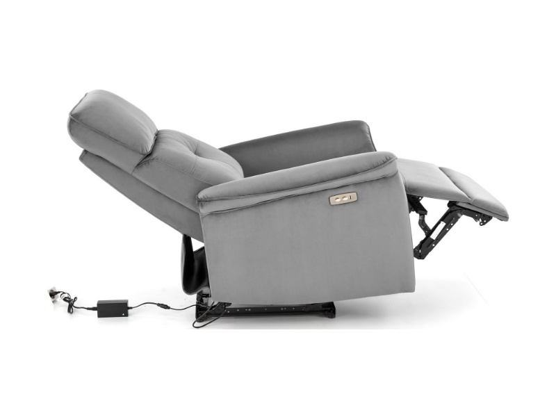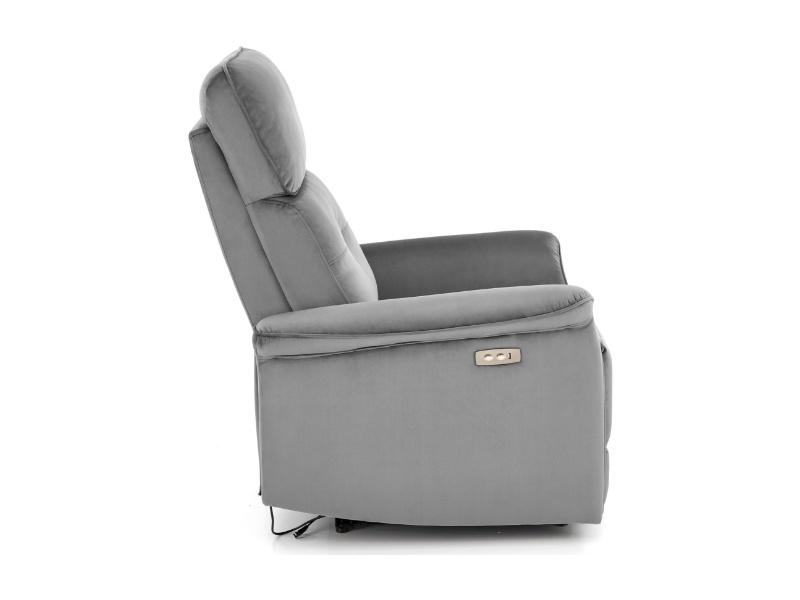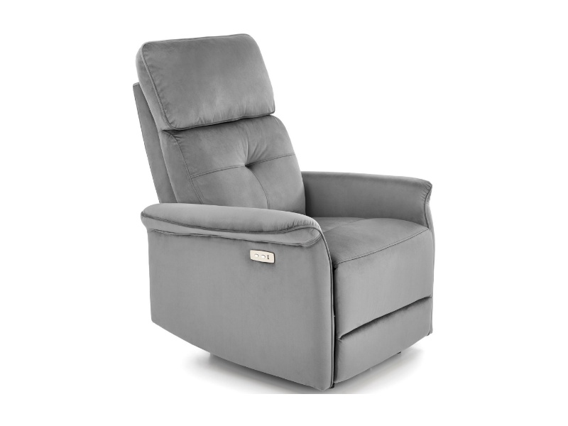 Fotoliu SEMIR cu recliner electric, port USB, confortabil, catifea grey 80x90xH108cm