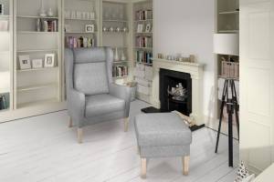 Fotoliu TACO cu picioare inalte nuanta lemnului, stil scandinav, minimalist, personalizabil 89x86xH111cm