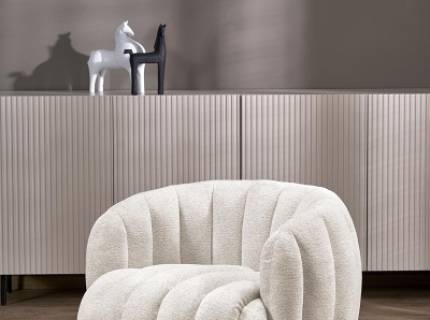 Fotoliu rotativ cozy cu design curbat FRASER material textil crem 82x83xH65cm