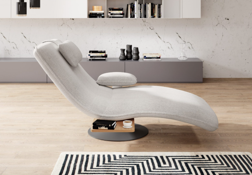 Fotoliu tip sezlong EVO rotativ, cu tetiera, suport tip masuta, personalizabil 78x163xH86cm